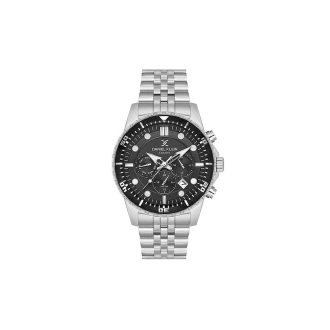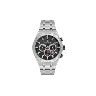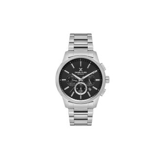Ανδρικό ρολόι Daniel Klein με ατσάλινο μπρασελέ και μαύρο καντράν. Ένδειξη ημερομηνίας, ημέρας, 24ώρου και δεύτερη ώρα.