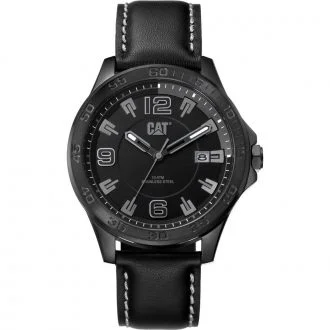 Ανδρικό sport ρολόι CAT με μαύρο δερμάτινο λουρί και μαύρη ατσάλινη κάσα. Ένδειξη ημερομηνίας