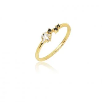 Επίχρυσο δαχτυλίδι με λευκά και μαύρα ζιργκόν.