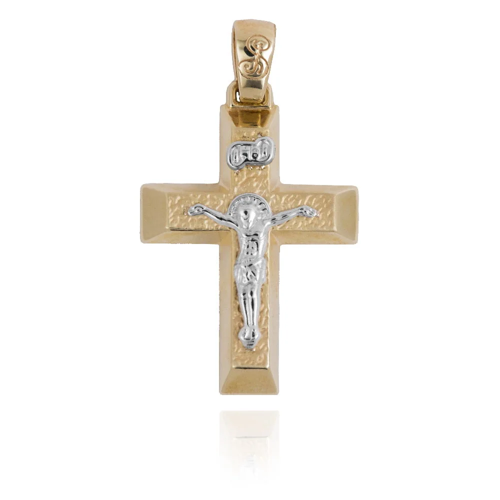 Ανδρικός χρυσός Σταυρός διπλής όψης, με τον εσταυρωμένο.