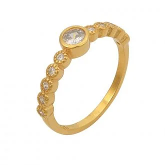 Επίχρυσο δαχτυλίδι με λευκά ζιργκόν.