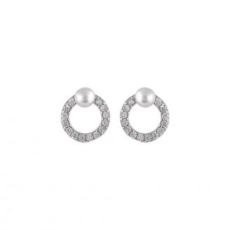 Ασημένια σκουλαρίκια κύκλου με μαργαριτάρι και λευκές πέτρες ζιργκόν