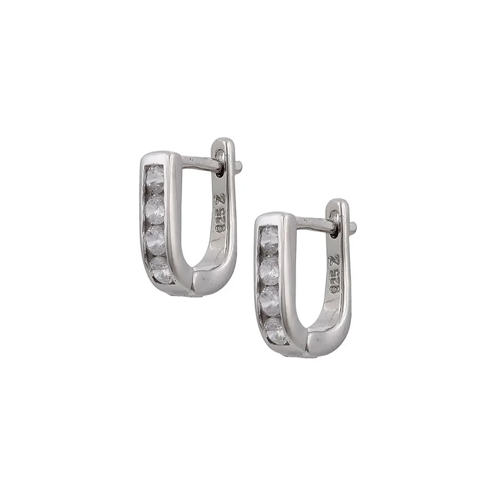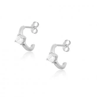 Ασημένια σκουλαρίκια οβάλ κρίκοι με λευκά ζιργκόν