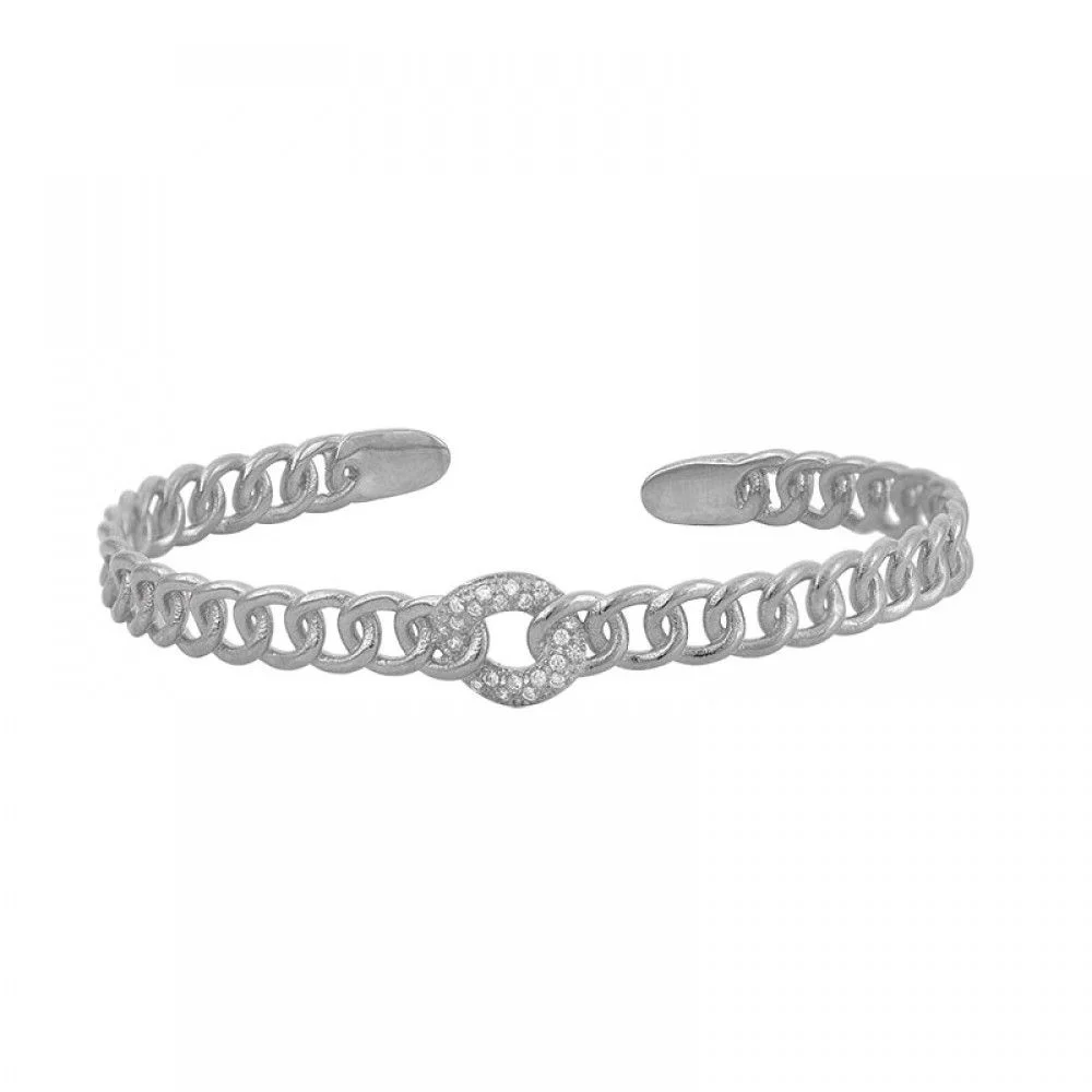 Ασημένια σταθερή χειροπέδα σε στυλ αλυσίδας με λευκές πέτρες ζιργκόν