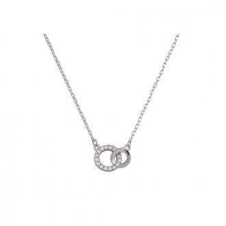 Ασημένιο κολιέ με κύκλους, με λευκές πέτρες.