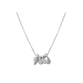 Ασημένιο κολιέ οικογένεια με λευκές πέτρες.