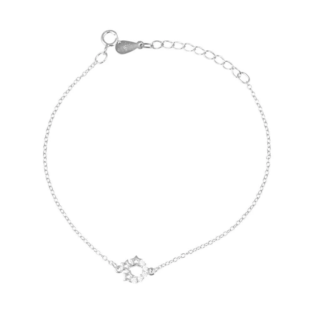 Ασημένιο βραχιόλι με μοτίφ αστεράκια με λευκές πέτρες ζιργκόν