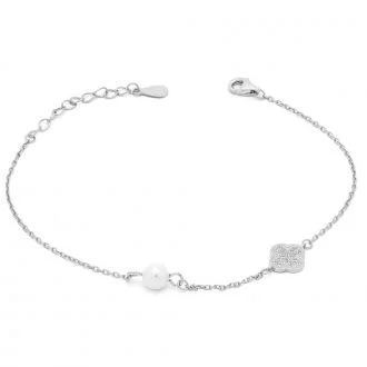 Ασημένιο βραχιόλι Van Cleef με λευκά ζιργκόν και μαργαριτάρια