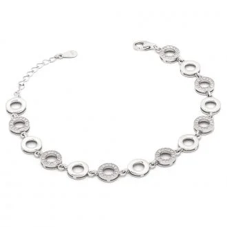 Ασημένιο βραχιόλι με κύκλους με λευκά ζιργκόν