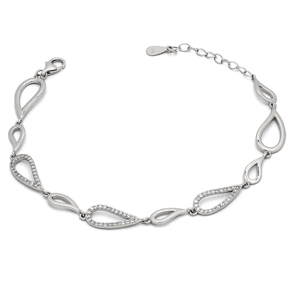 Ασημένιο βραχιόλι με μοτίφ σταγόνες με λευκές πέτρες ζιργκόν