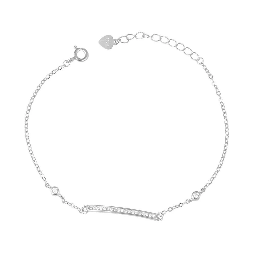 Ασημένιο βραχιόλι ταυτότητα με λευκές πέτρες ζιργκόν