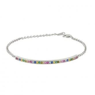 Ασημένιο βραχιόλι ταυτότητα με πολύχρωμες πέτρες ζιργκόν.