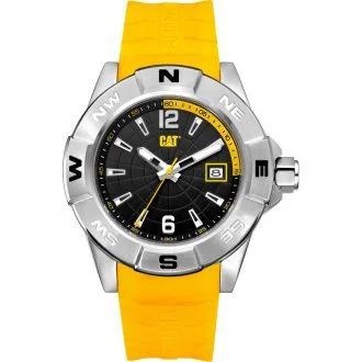 Ανδρικό sport ρολόι CAT με ατσάλινη κάσα, κίτρινο καντράν και ατσάλινο μπρασελέ. Ενδείξεις ημερομηνίας.