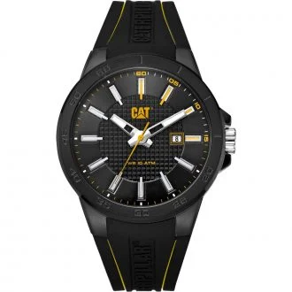 Ανδρικό sport ρολόι CAT με μαύρη ατσάλινη κάσα, μαύρο καντράν και μαύρο λουρί σιλικόνης. Ένδειξη ημερομηνίας.