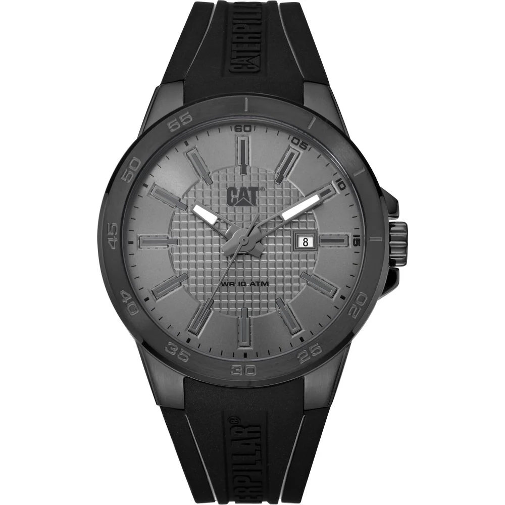 Ανδρικό sport ρολόι CAT με μαύρη ατσάλινη κάσα, μαύρο καντράν και μαύρο λουρί σιλικόνης. Ένδειξη ημερομηνίας.