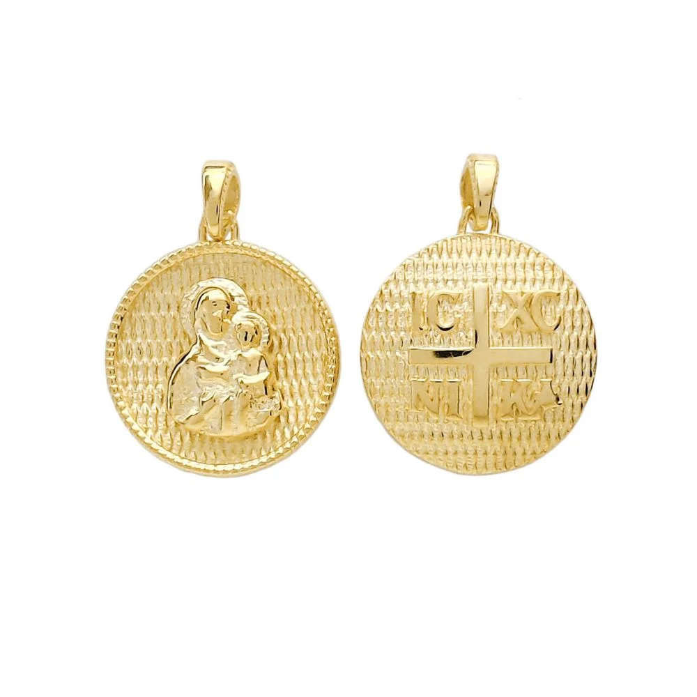 Χρυσό φυλακτό Χριστόγραμμα διπλής όψης με την παναγία