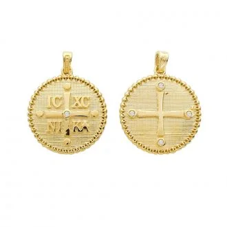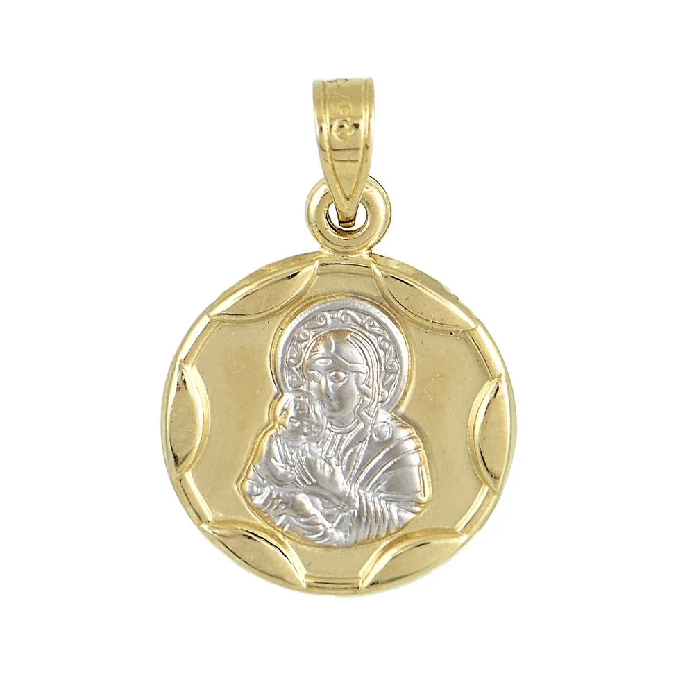 Χρυσό φυλακτό Κωνσταντινάτο, διπλής όψης με την εικόνα της Παναγίας σε λευκόχρυσο στην άλλη πλευρά.