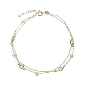 Χρυσό βραχιόλι με μονοπετράκια και μαργαριτάρια.