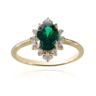 Χρυσό μονόπετρο δαχτυλίδι με οβάλ πράσινη πέτρα.