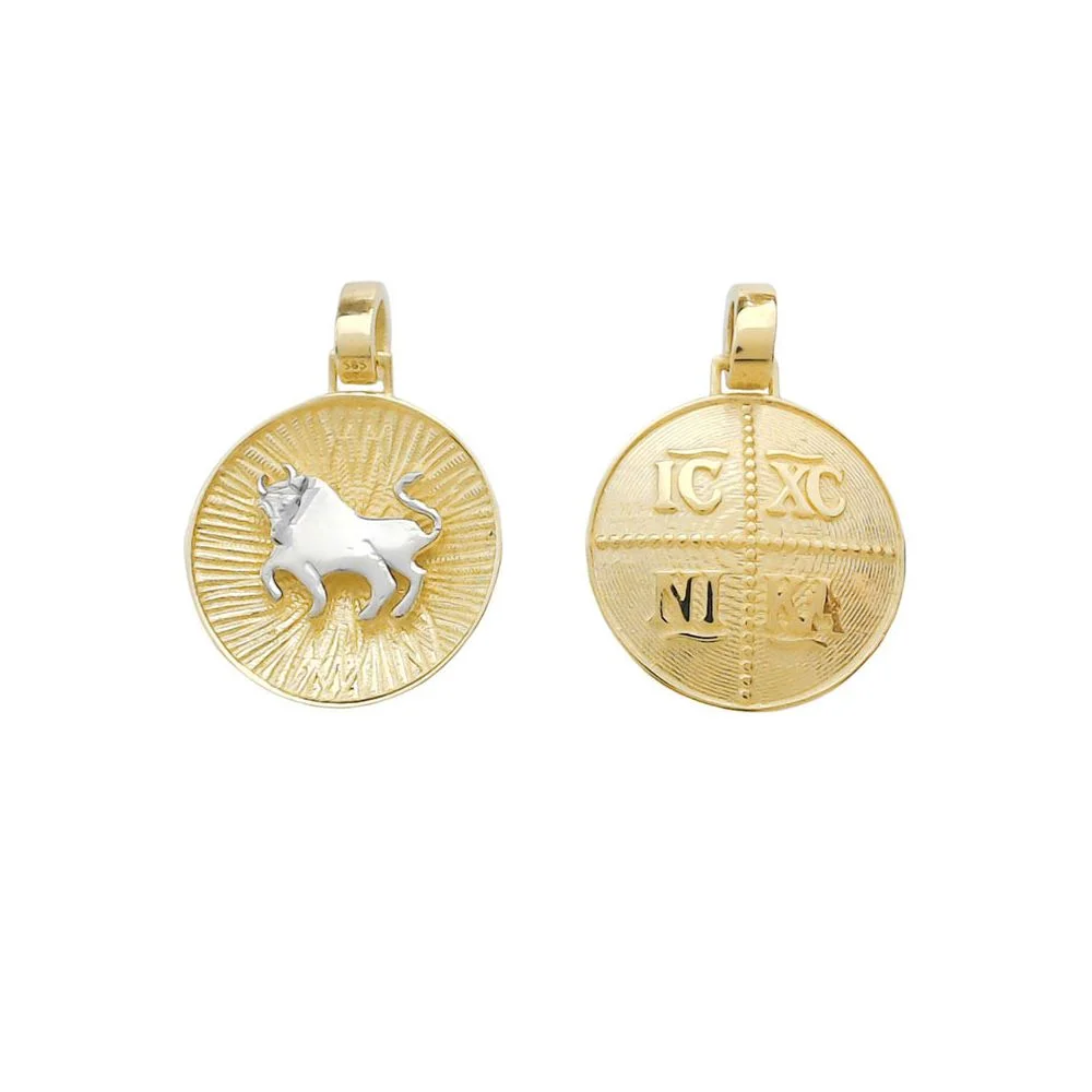 Χρυσό ζώδιο Ταύρος διπλής όψης, με το Χριστόγραμμα στην πίσω πλευρά.