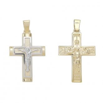 Ανδρικός χρυσός σταυρός διπλής όψης με τον Εσταυρωμένο.