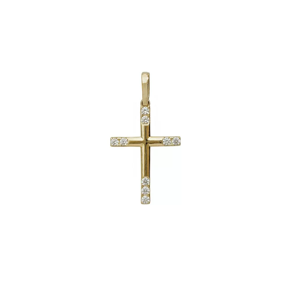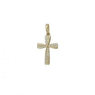 Γυναικείος χρυσός σταυρός λουστρέ μικρός με λευκές πέτρες.