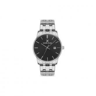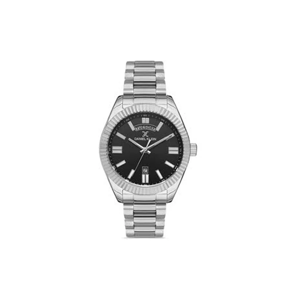 Ανδρικό ρολόι Daniel Klein με μαύρο καντράν και ατσάλινο μπρασελέ. Ένδειξη ημερομηνίας και μεγάλη ένδειξη ημέρας.