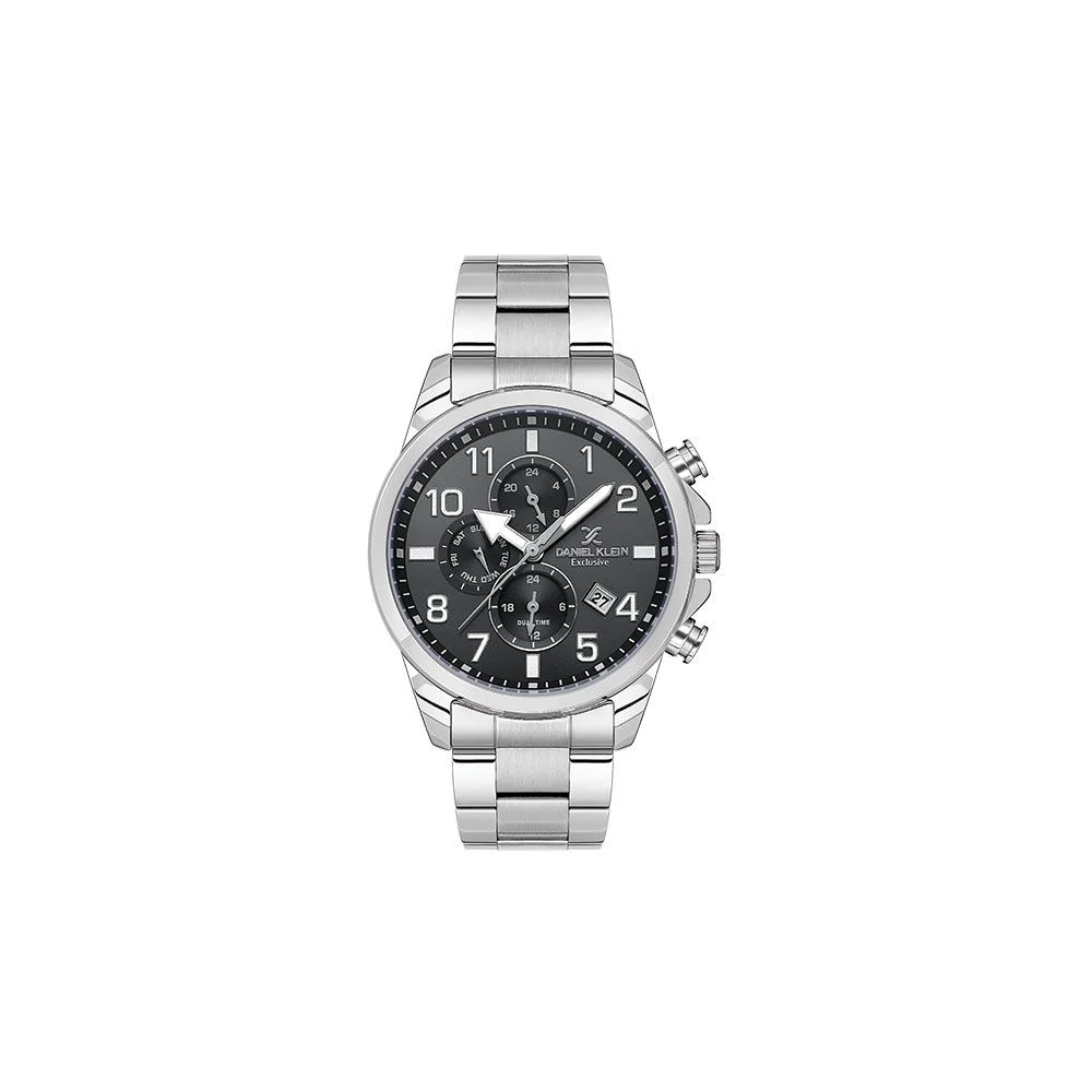Ανδρικό ρολόι Daniel Klein με ατσάλινο μπρασελέ και μαύρο καντράν. Ένδειξη ημερομηνίας, ημέρας και 24ωρου