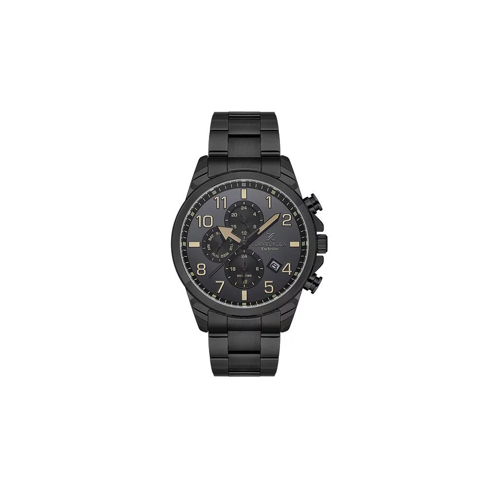 Ανδρικό ρολόι Daniel Klein με μαύρο ατσάλινο μπρασελέ και μαύρο καντράν. Ένδειξη ημερομηνίας, ημέρας και 24ωρου