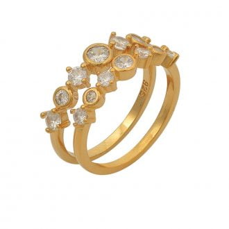 Ασημένιο επίχρυσο δαχτυλίδι με λευκές πέτρες ζιργκόν
