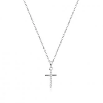 Ασημένιο κολιέ με σταυρό με λευκά ζιργκόν