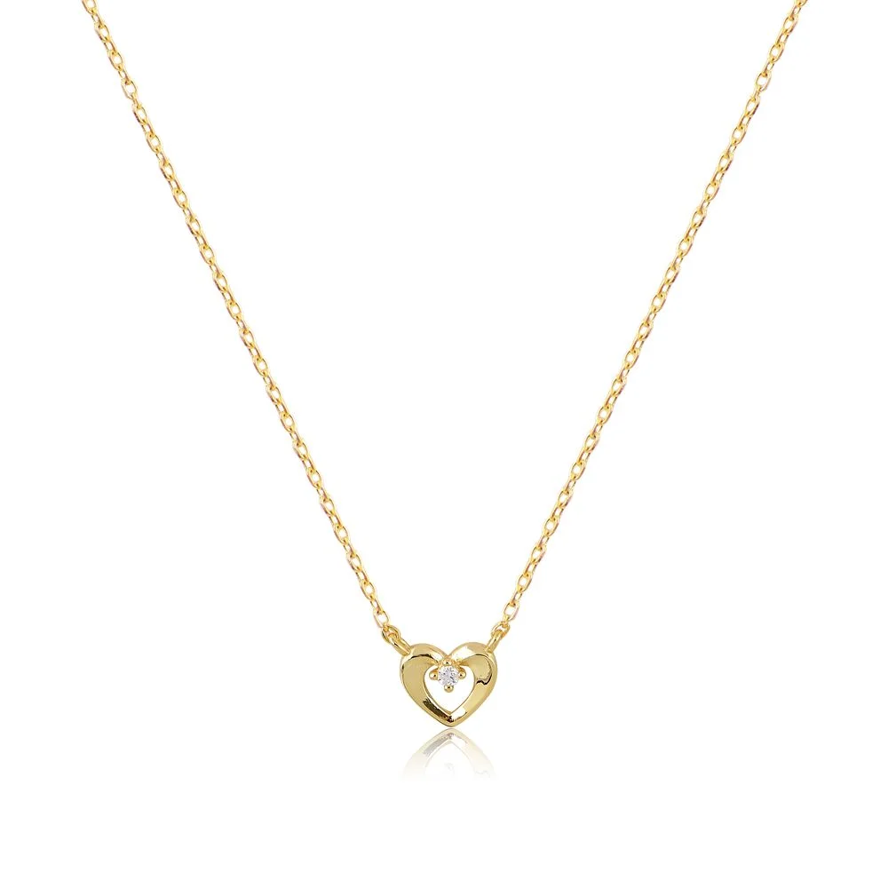 Ασημένιο επίχρυσο κολιέ με μοτίφ καρδούλα