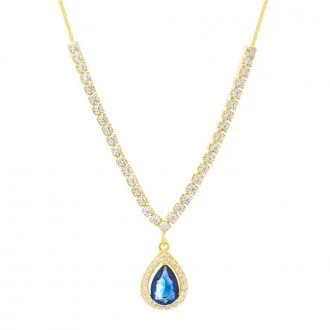 Επίχρυσο κολιέ μονόπετρο με μπλέ πέτρα.