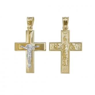 Γυναικείος χρυσός σταυρός διπλής όψης.