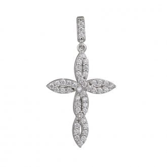 Γυναικείος λευκόχρυσος σταυρός με πετράδια ζιργκόν στην επιφάνεια.