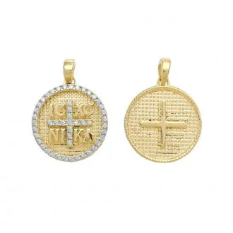 Χρυσό φυλακτό Χριστόγραμμα διπλής όψης με τον σταυρό