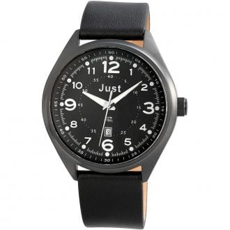 Ανδρικό ρολόι Just με μαύρο καντράν, ατσάλινη κάσα και μαύρο λουράκι σιλικόνης. Χρονογράφος και ένδειξη ημερομηνίας.