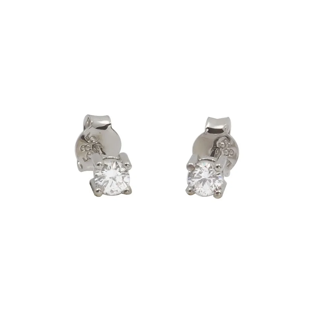 Λευκόχρυσα σκουλαρίκια μονόπετρα με λευκή πέτρα ζιργκόν 3.5mm.