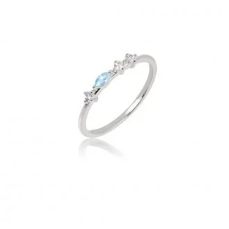 Ασημένιο δαχτυλίδι με λευκά και γαλάζια ζιργκόν.