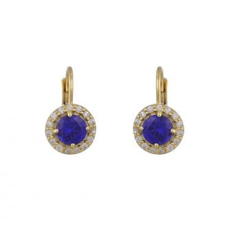 Λευκόχρυσα σκουλαρίκια ροζέτα στρόγγυλη με λευκές πέτρες ζιργκόν.