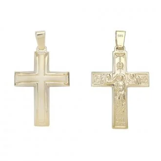 Unisex χρυσός σταυρός διπλής όψης με τη βάπτιση.