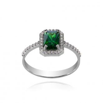 Λευκόχρυσο δαχτυλίδι ροζέτα με πράσινη πέτρα.