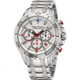 Ανδρικό ρολόι Nautica με ατσάλινο μπρασελέ και μπλε καντράν. Χρονογράφος, ένδειξη ημερομηνίας και 24ωρο. Επιπλέον λουράκι σιλικόνης σε μπλε χρώμα και συσκευασία δώρου.