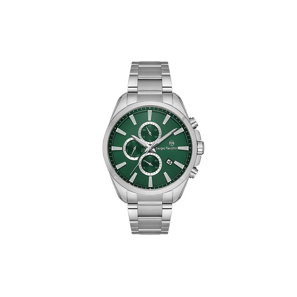 Ανδρικό ρολόι Sergio Tacchini με ατσάλινο μπρασελέ και πράσινο καντράν. Ένδειξη ημερομηνίας, ημέρας και 24ωρο.