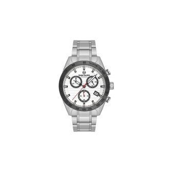 Ανδρικό ρολόι Sergio Tacchini με ατσάλινο μπρασελέ και λευκό καντράν. Χρονογράφος με ένδειξη ημερομηνίας και 24ώρου.