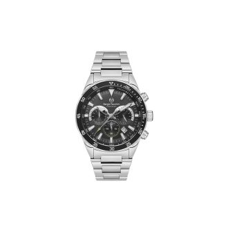Ανδρικό ρολόι Sergio Tacchini με ατσάλινο μπρασελέ και μαύρο καντράν. Χρονογράφος με ένδειξη ημερομηνίας και 24ώρου.