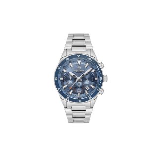 Ανδρικό ρολόι Sergio Tacchini με ατσάλινο μπρασελέ και μπλε καντράν. Χρονογράφος με ένδειξη ημερομηνίας και 24ώρου.