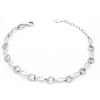 Ασημένιο βραχιόλι με μοτίφ άπειρο με λευκά ζιργκόν