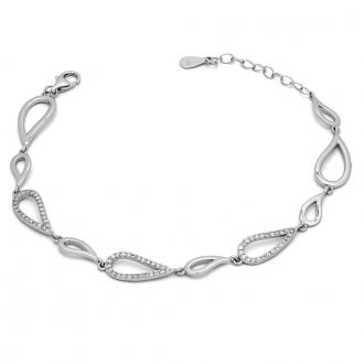 Ασημένιο βραχιόλι με μοτίφ σταγόνες με λευκά ζιργκόν