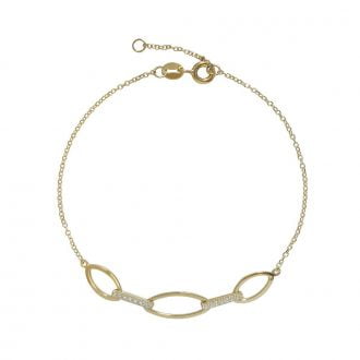 Χρυσό βραχιόλι με λουστρές κρίκους και πέτρες.